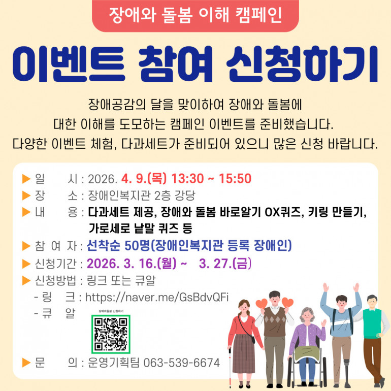 장애공감의 달을 맞이하여 장애와 돌봄에 대한 이해를 도모하는 캠페인 이벤트를 준비했습니다.