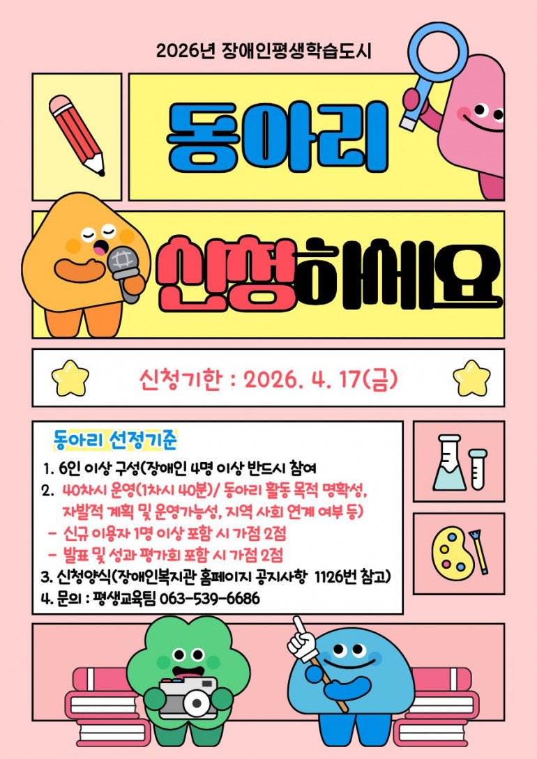 2026년 평생학습 [북적북적 동아리] 신청 안내