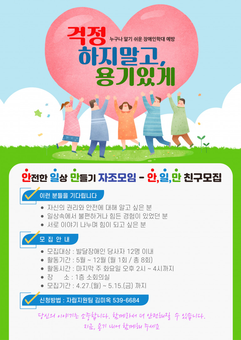 정읍시장애인복지관에서는 안전한 일상을 함께 만들어갈 친구를 모집합니다.