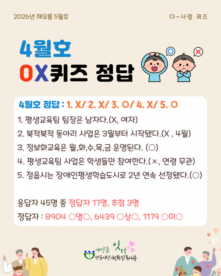 공지 | 4월 다사랑 퀴즈 당첨자 안내