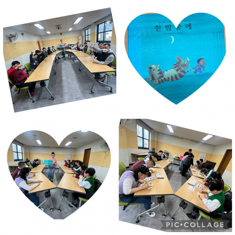 『한밤중에』은 따뜻한 유머가 넘치는 세계적인 그림책 작가 히도 반 헤네흐텐이 쓰고 그린 새로운 느낌의 베갯머리 그림책입니다. 이 책은 고요하고 아름다운 밤의 풍경 속에 호랑이와 꼬마의 모습이 다정하게 펼쳐지는 내용입니다.
